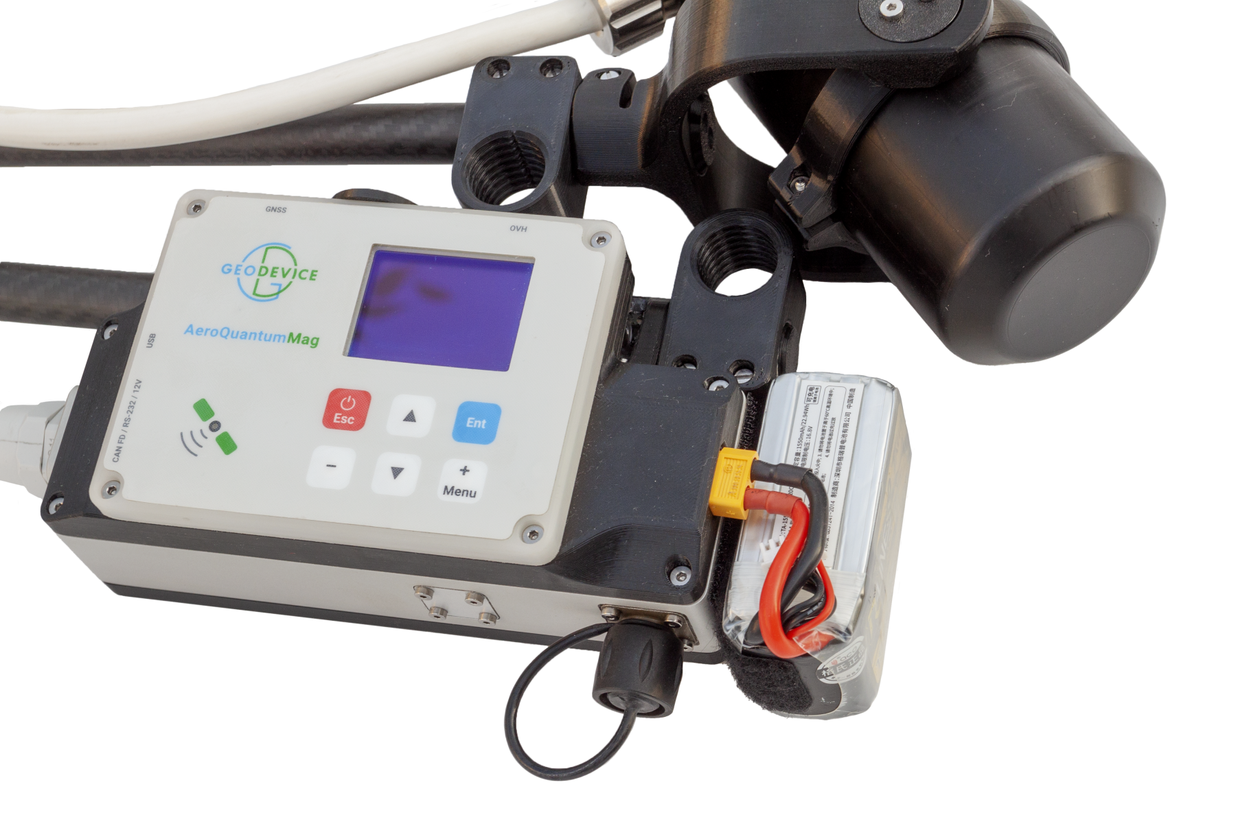 AeroQuantumMag est conçu pour effectuer de manière efficace des levés magnétiques à l'aide d'un drone. Le dispositif se caractérise par une vitesse de mesure élevée (jusqu'à 100 Hz) et une sensibilité de 0,002 nT/√Hz rms. Le corps aérodynamique avec cadre en fibre de carbone ne pèse que 1,3 kg avec la batterie. Ce faible poids augmente le temps de vol du drone. Le magnétomètre ne nécessite aucun échange de données avec le drone et utilise sa propre batterie, il peut donc être utilisé avec n'importe quel drone.